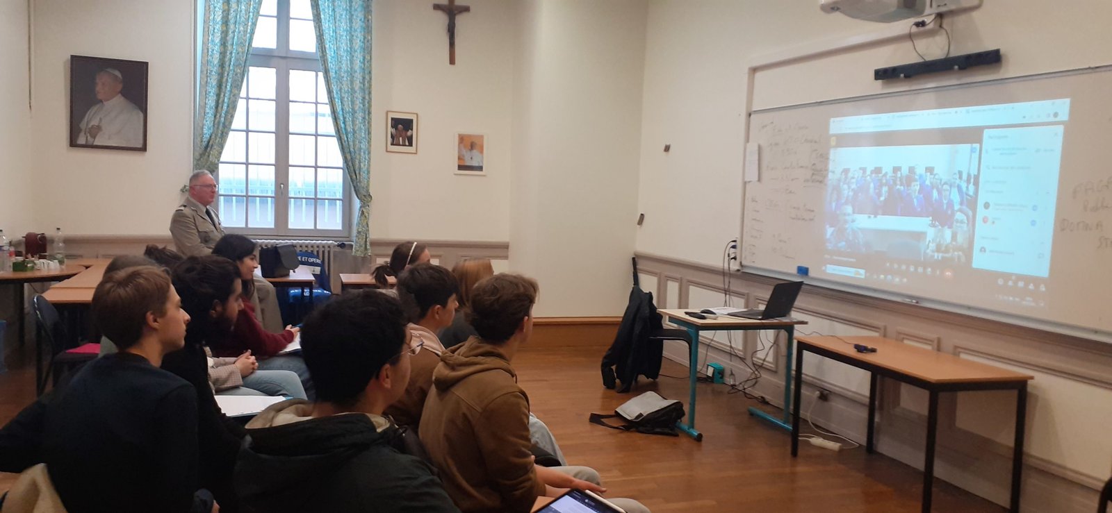Les ACM se mettent en lien avec les autorités et institutions du pays dans lequel les unités militaires sont installées pour favoriser la francophonie, et les relations entre la France et le pays d’accueil.Une visioconférence pour faire connaissance entre jeunes Français et jeunes Roumains a donc été organisée. Les jeunes Français très à l’aise dans leur langue, ont répondu aux questions des Roumains et les ont interrogés sur leur système scolaire et leur vie.